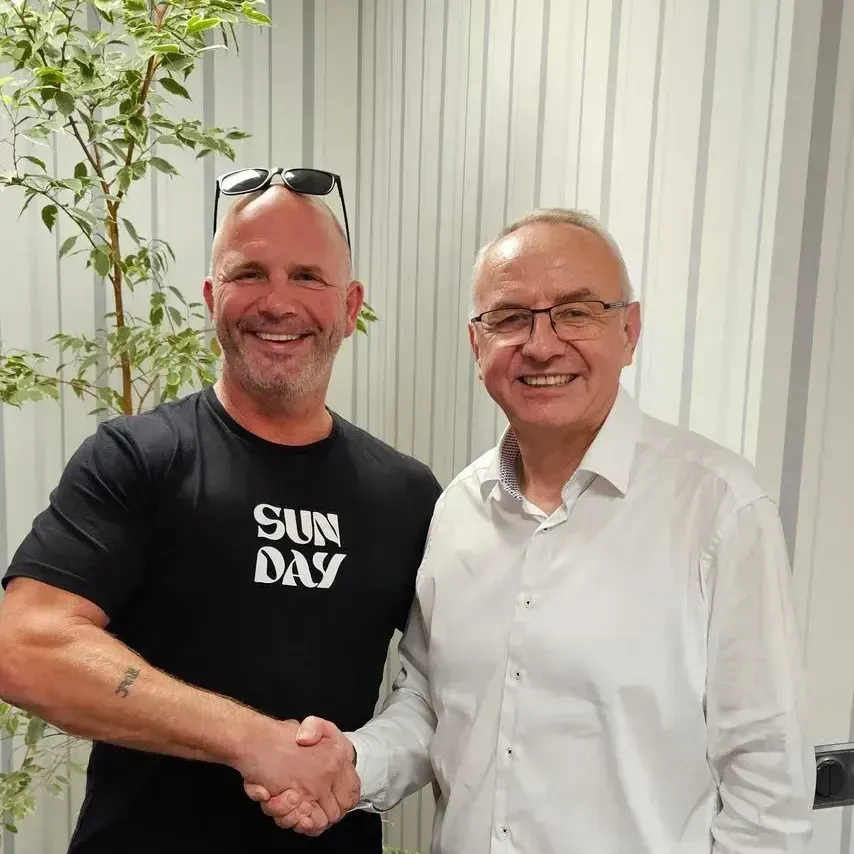 Am heutigen Tag unterzeichnete Thomas Schicketanz vom gleichnamigen Zweirad-Center in Maasdorf den neuen Sponsorenvertrag für die Saison 2025/26. Über viele Jahre hinweg unterstützt er unseren Verein finanziell tatkräftig und diesmal hat die Zuwendungen verdoppelt gegenüber dem Vorjahr. Grund waren u.a. die hervorragenden Leistungen des gesamten Vereins und der 3.Platz unserer 1.Männermannschaft in der höchsten Klasse des Landes Brandenburg. Und viele Sportler sind gleichzeitig auch Kunden im Zweirad-Center Schicketanz. Unser besonderer Dank gilt Thomas im Jahr seines 35-jährigen Bestehens seiner Firma im Namen des gesamten Vereins. Wir hoffen gemeinsam mit ihm und seiner Frau auf eine erfolgreiche Saison bei den zahlreichen Besuchen in der Kurstadt-Arena. Peter Noch
