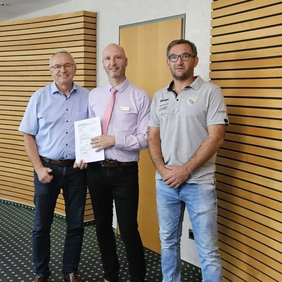 In der letzten Woche unterzeichnete Martin Ehring – Geschäftsführer der IGB Bad Liebenwerda im Beisein von Thomas Große – neuer Verantwortlicher für Sponsoring des HC - und Peter Noch den neuen Sponsorenvertrag für die Saison 2025/26. Beide informierten Martin Ehring über die guten Ergebnisse der letzten Saison und gaben Einblick in die Ziele für die kommende neue Saison. Besonders die guten Ergebnisse im Nachwuchsbereich lassen unseren Verein weiterhin positiv in die Zukunft blicken. Hervorragend auch das Ergebnis der ersten Mannschaft mit dem 3.Platz in der Oberliga Brandenburg. Die Werbeausstrahlung im gesamten Land Brandenburg als Trikotsponsor der IGB ist damit positiv anzusehen. Unser besonderer Dank gilt damit der gesamten IGB Bad Liebenwerda für die nun schon jahrelange Unterstützung des Vereins. P.N.