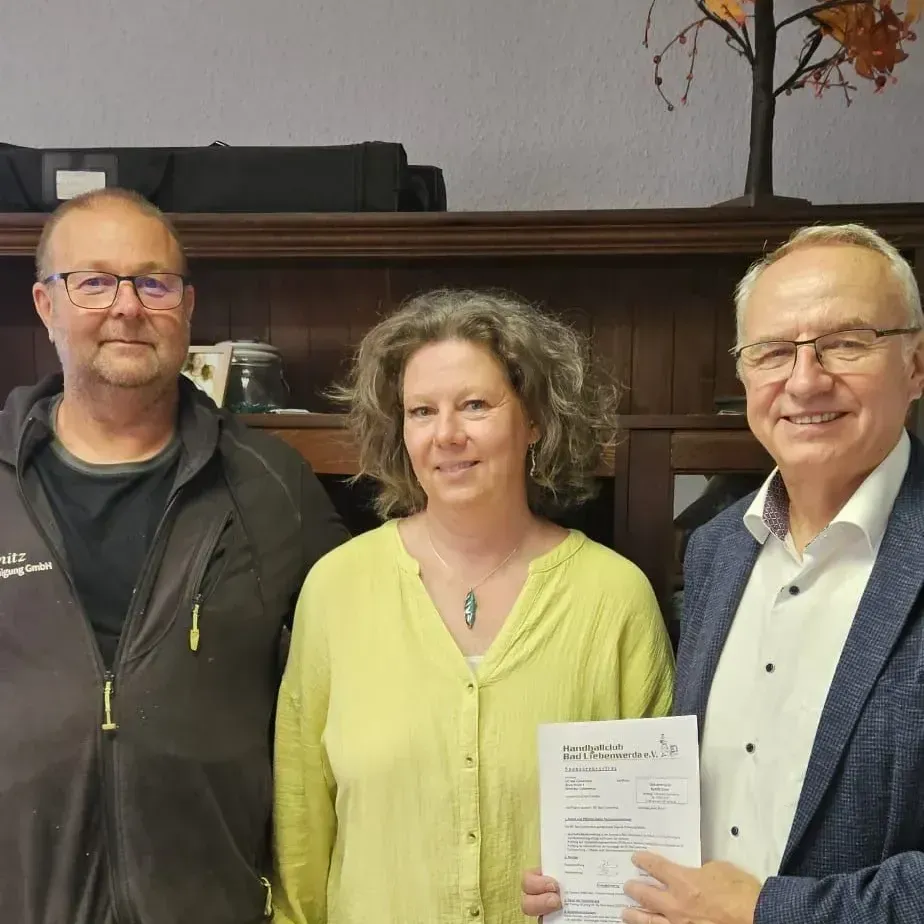 Am heutigen Donnerstag konnte der HC Bad Liebenwerda die neuen Sponsorenverträge mit der Wohnungsgenossenschaft „Elstertal“ eG und der Firma Bautenschutz Mario Nürbchen zu verbesserten Konditionen unterzeichnen. Peter Noch informierte Andreas Wollmann und Mike Richter von der Wohnungsgenossenschaft über die sehr erfolgreiche Saison 2024/25 des gesamten Vereins. Letztlich trug die erfolgreiche Nachwuchsarbeit im Verein ihre Früchte bis in den Männer- und Frauenbereich. Über die finanzielle Zuwendung hinaus sponsort die Genossenschaft über viele Jahre zusätzlich das Freibier zum letzten Heimspiel des Vereins. Wir sagen nochmals im Namen des gesamten Vereins herzlichen Dank für die jahrelange Unterstützung. P.N.